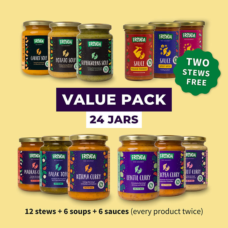 Discover the full range of Froyda's curry stews, soups and sauces and find your favourites. You get 2 stews for free!